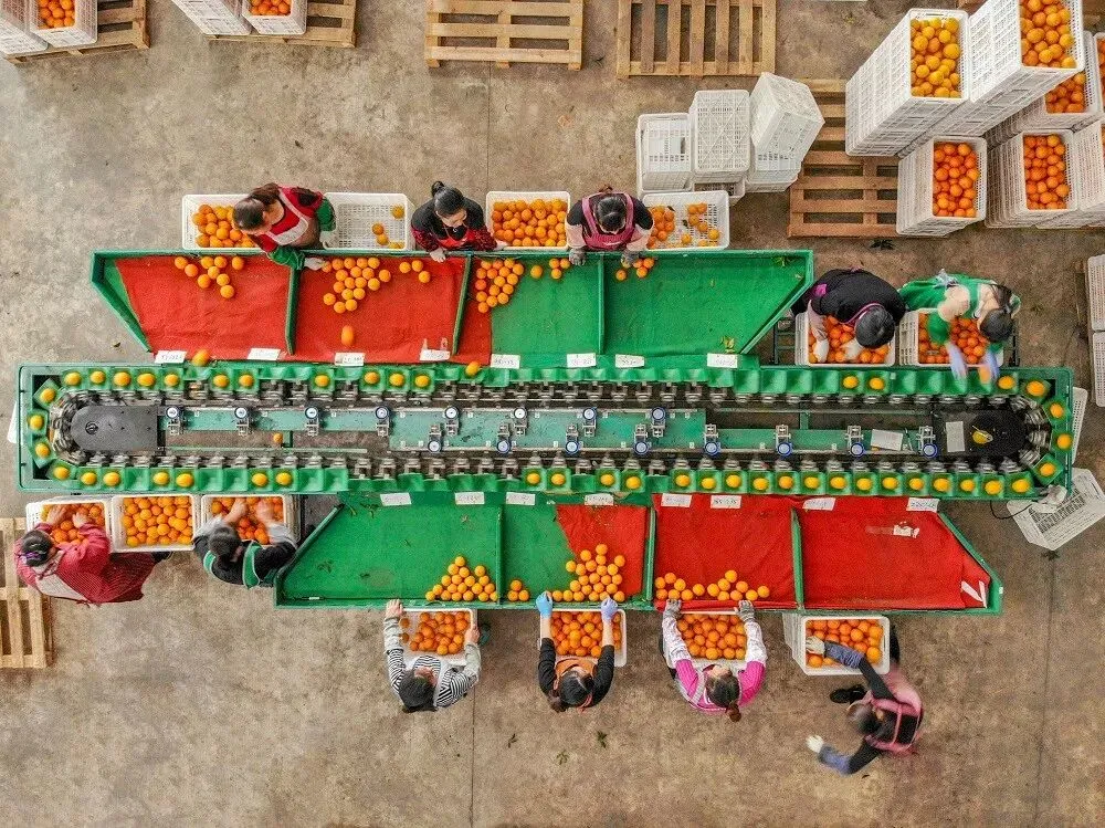 四川眉山,阿里巴巴爱媛橙分拣线。每年,眉山出产的爱媛橙,相对其他产地早熟一个月,成为双11的爆款。(图片由阿里巴巴提供)