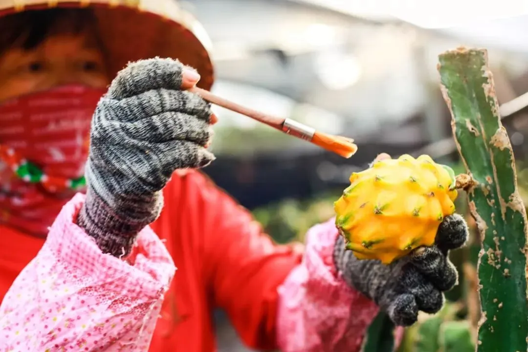 海南三亚,依据阿里巴巴订单农业种植的黄金黄火龙,让当地种植户收入增长10多倍。(图片由阿里巴巴提供)