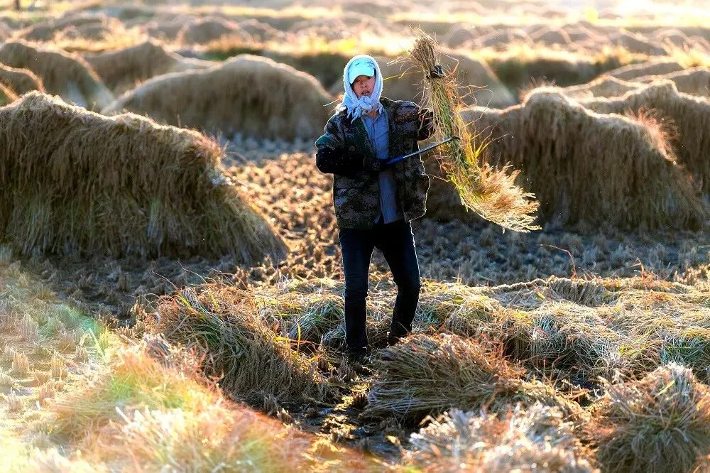 黑龙江五常,水稻种植户秋收。今年7月,阿里巴巴与黑龙江北大荒集团合作,共建“数字农业标准示范基地”,面积将覆盖5万亩良田,预计,未来推动北大荒大米线上销售增长10倍以上。(图片由阿里巴巴提供)