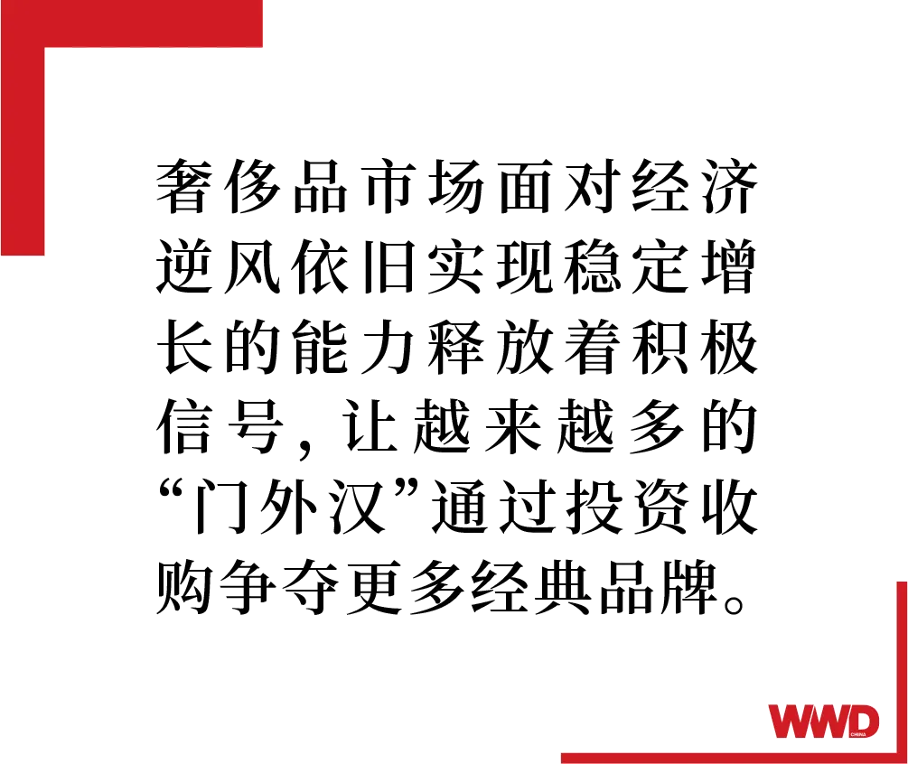 一方面,近段时间越来越多资本巨头不断将目光瞄向传奇经典品牌;另一方面,在过去并不稳定的经济环境中,同样拥有着“传奇经典”价值的奢侈品市场,在面对经济逆风依旧能实现稳定增长的能力,一直在向全球市场释放着积极信号,并且让越来越多的“门外汉”通过投资收购试图争夺更多经典品牌。