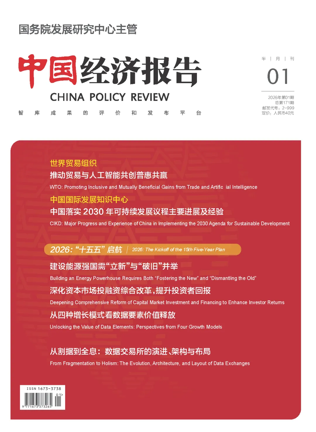 《中国经济报告》是由国务院发展研究中心主管的以经济形势和经济政策研究为主要内容的半月刊,是中国发展出版社旗下4种期刊之一,致力于打造立足国内、面向全球的智库成果评价和发布平台。现设有封面专题、全局与战略、宏观经济、产业与公司、金融与资本、市场与区域、资源与环境、法治与管理、社会发展、世界经济、经济学家、智库研究、经济随笔等栏目。