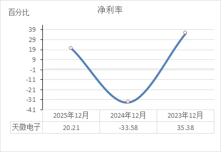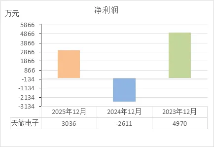 从天微电子的利润表,直接说重点:这家公司2024年亏得很惨,2025年虽然缓过来了,但赚钱能力还不如两年前,而且主业其实没怎么进步,主要靠理财和会计调整把账面做红了。