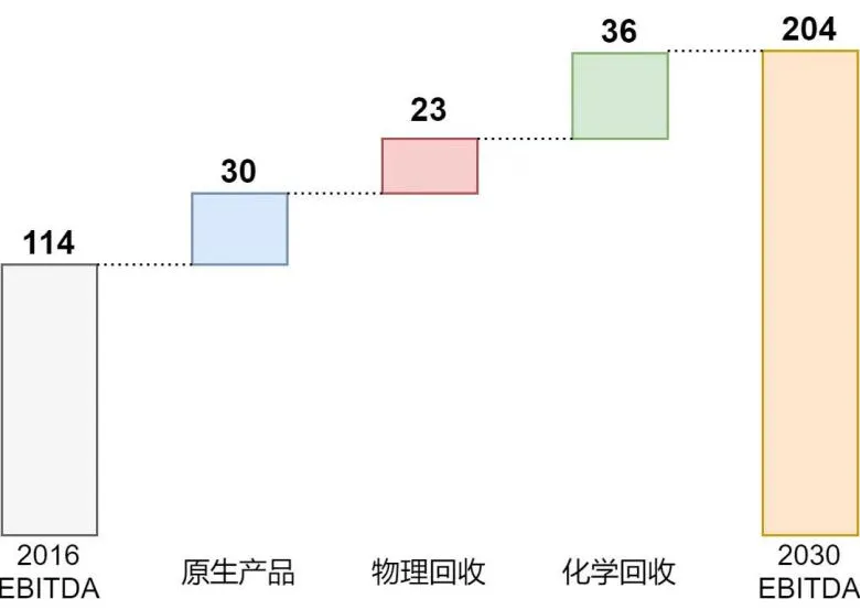 图7 2016-2030塑料回收利润增长(单位:十亿美元)