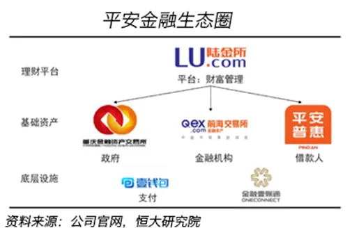 2012年上线的陆金所是核心企业,布局财富管理,已与300多家机构建立了广泛的资产端合作关系,向1250余万活跃投资客户提供了7000多种产品及个性化金融服务。