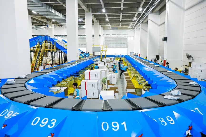 在国内,菜鸟国际快递拥有65个揽收仓和分拨仓,每日最高能揽收1000万单。利用现有的仓储资源,“5日达”产品将揽收、分拨等功能集中在一个仓库内完成,将传统分散在各地、多流程的前期步骤合为一条主线,一次性完成一个完整的操作,为商家平均节约1天-2天物流时长。货品出关后,进入B段干线运输环节。参与“5日达”的产品都是走空运。由于运输里程与时间相对固定,要提升效率只能通过加大发机频次来实现。在C段目的国中转环节,菜鸟目前在欧洲、亚洲、美洲等地建成了18个海外分拨中心,均配备数字化流水线和自动化设备。包裹清关后,会统一运送至菜鸟在当地的分拨中心处理,再进行末端配送。此外,菜鸟还在一些关键的物流中转城市建立了智慧物流枢纽(eWTP Hub,简称eHub),统一处理复杂工作。以2021年11月正式投入使用的比利时列日eHub为例,其主要分为智能货站和分拨中心两个部分:智能货站加快陆空之间货物转运,分拨中心集中处理卸货、清关、分拣,提效省时。