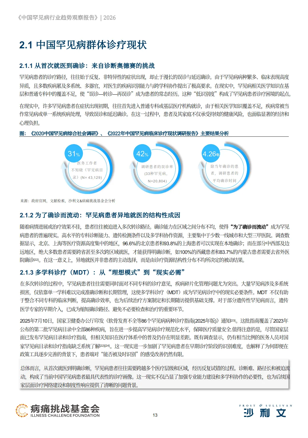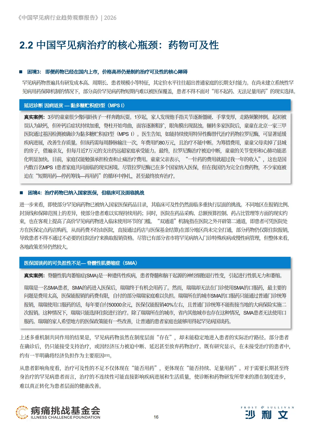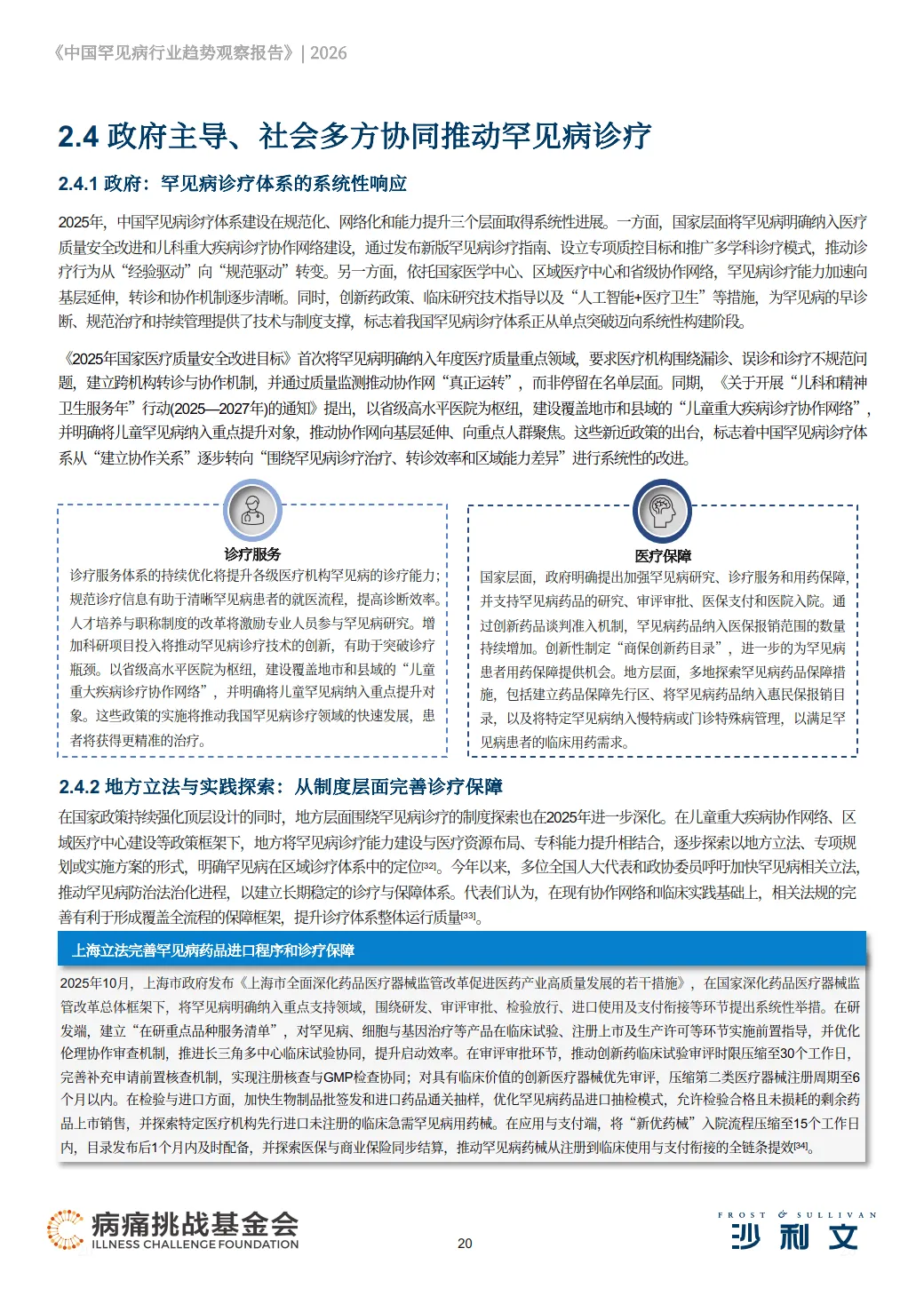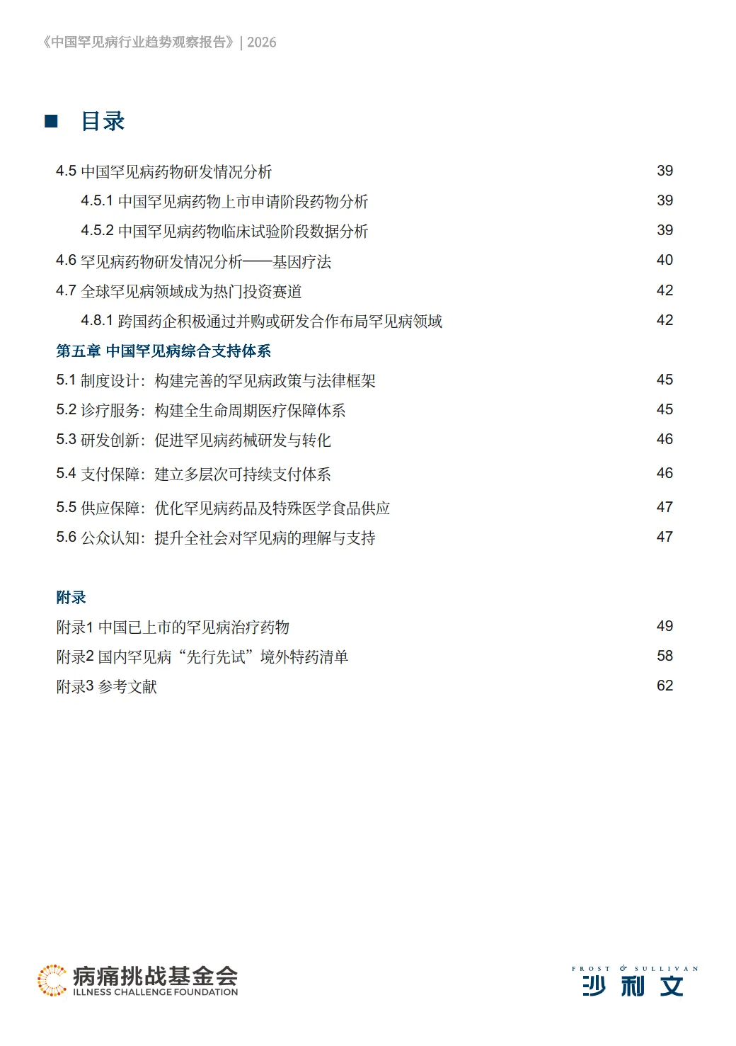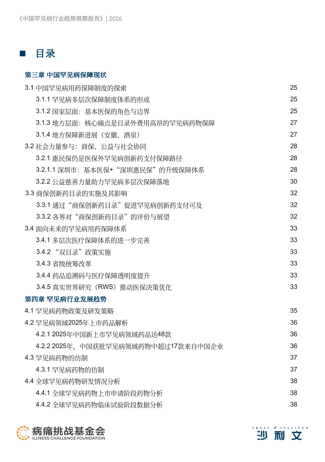 报告指出,全球已知罕见病超 10000 种,中国已知逾 4000 种,患者规模约 2000 万。经过十年发展,中国已发布两批罕见病目录,覆盖 207 种疾病,全国诊疗协作网扩展至 419 家医院,形成了政策、产业、资本与社会力量协同发力的格局。2025 年行业成果显著,全年获批罕见病药品 48 款,其中国内企业研制超 17 款,国家医保目录已覆盖 71 种罕见病的 140 款药物,首版商保创新药目录同步发布,“双目录” 互补的支付生态正式成型。