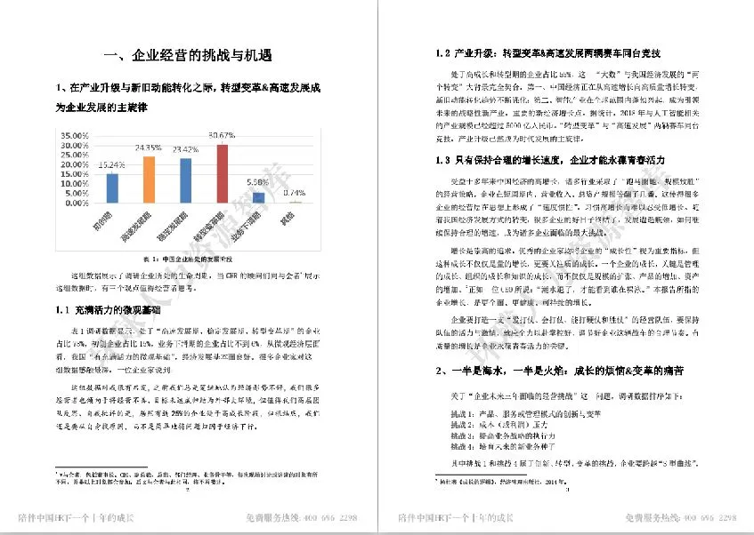 在这1076家企业中,30.67%的企业都处在转型变革期,24.35%的企业处在高速发展期,这些企业发展的速度远远超出我们的想象,可以说“一半是海水,一半是火焰”。