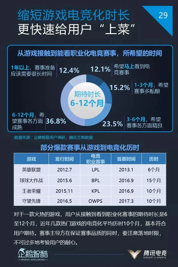 5、对于一款火热的游戏,用户从接触游戏到看到职业化赛事的期待时长是6至12个月