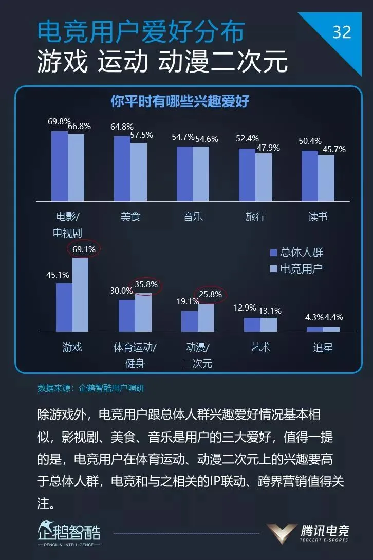 7、电竞用户在体育运动、动漫二次元上的兴趣要高于总体人群