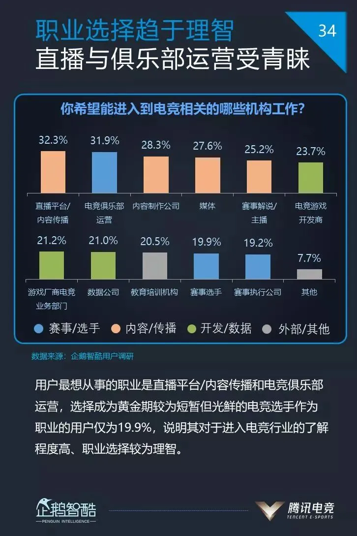 8、32.6%对电竞感兴趣的用户有从业电竞的意愿