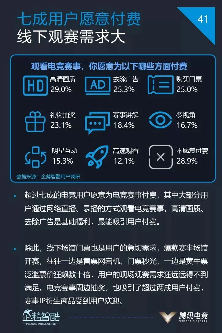 9、超过七成的电竞用户愿意为电竞赛事付费