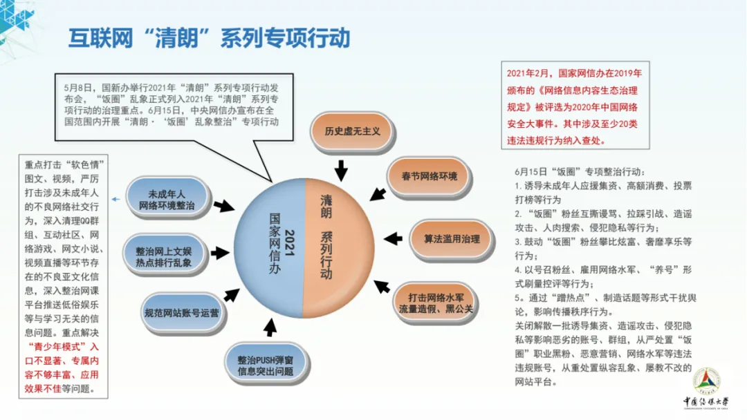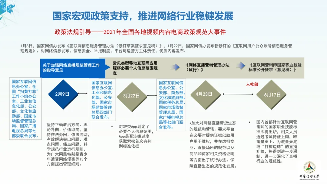 在国家网信办发布《互联网信息服务管理办法(修订草案征求意见稿)》,国家网信办发布新修订的《互联网用户公众账号信息服务管理规定》等政策指导下,对网络信息发布、信息安全、举报制度、平台与运营方主体责任、优质内容发布做出政策引导。以及在 「清朗·『饭圈』乱象整治」等专项行动下,网络行业进一步稳健发展。