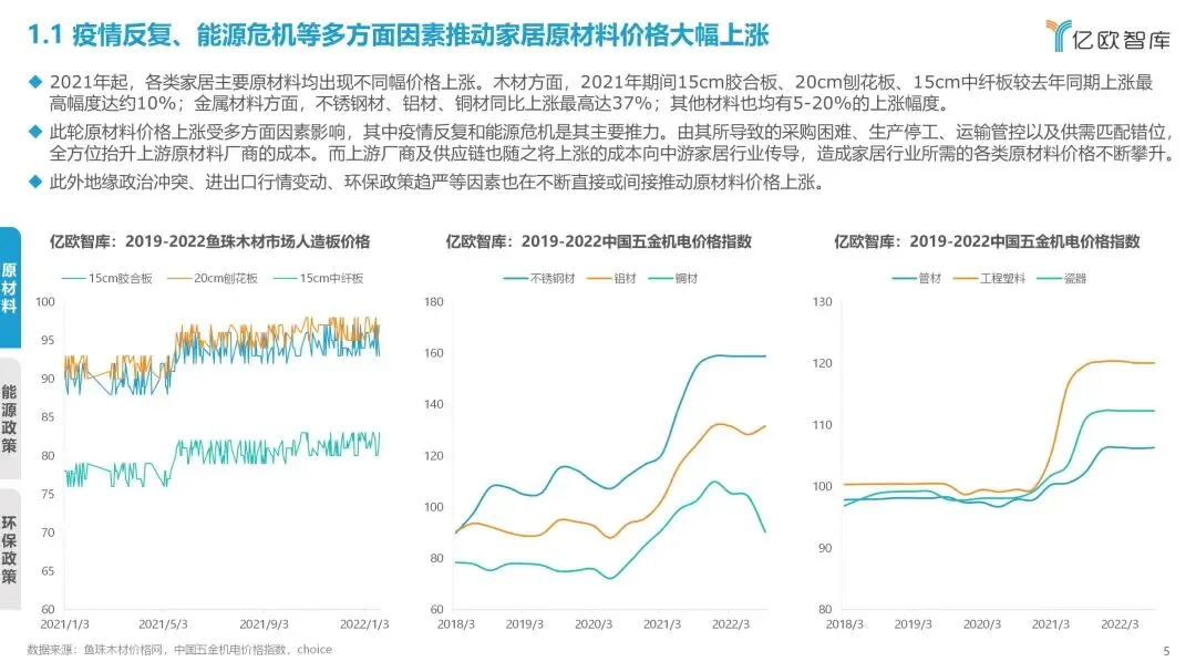 原材料价格上涨、产能受限、环保政策趋严等因素相互叠加,在成本端给与家居企业较大的压力,部分企业甚至出现收入成本倒挂的现象,进而对产品价格上涨形成了强大推力。