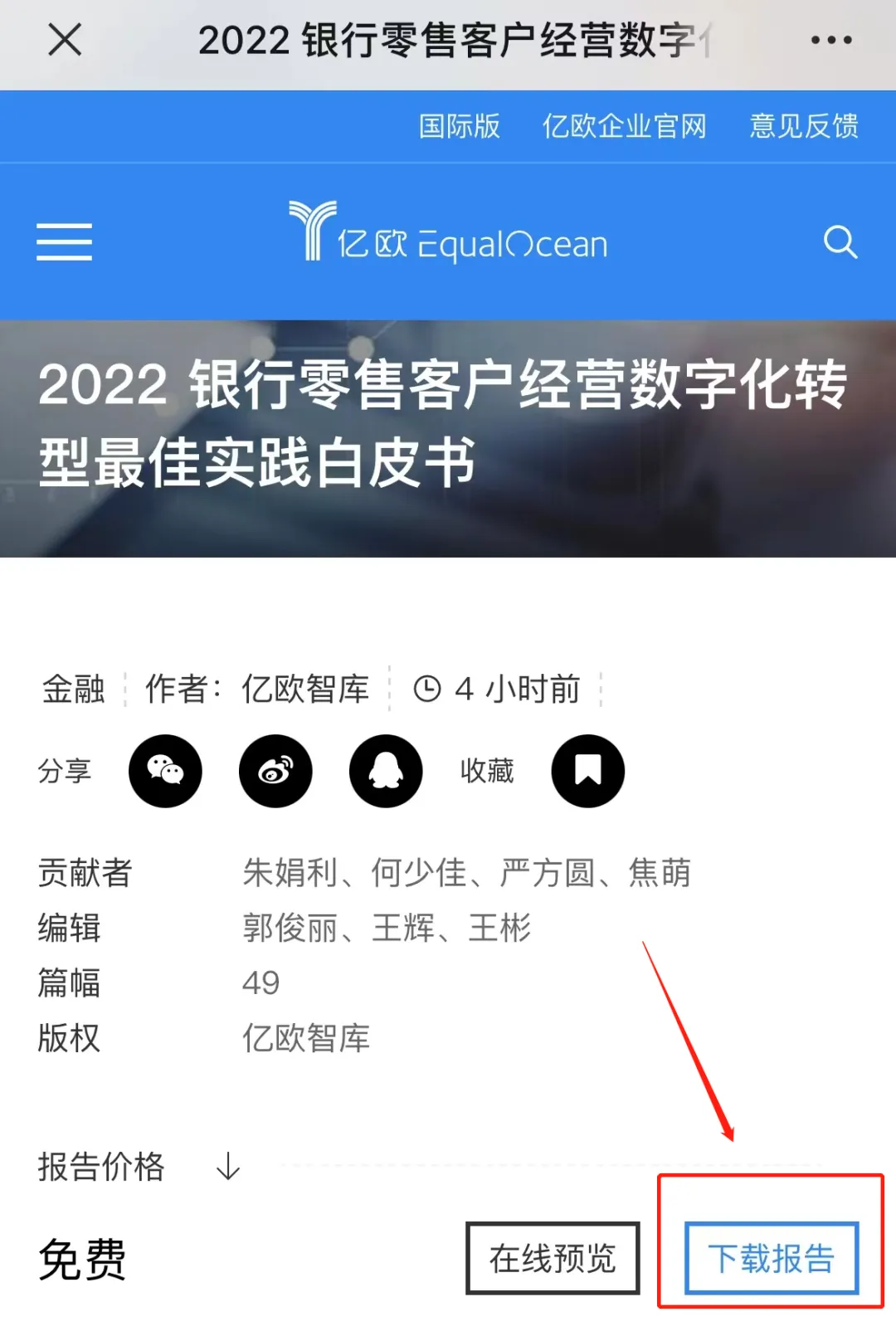 2. 点击下载报告,登录注册账号