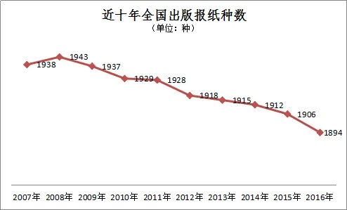 媒介形态多元化。2017年,传统纸媒发展和转型形势依然非常严峻。《京华时报》、《东方早报》、《贵州商报》、《江西上饶广播电视报》、《楚天金报》等市场化报纸停刊。国家新闻出版广电总局官网数据显示,近十年全国出版报纸种数呈下降趋势,十年间共计减少44种报纸。都市报的相继停刊,既因为盈利模式相对单一、新型收入探索艰难,也因为网络上免费海量信息对用户的吸引和对都市报带来的巨大冲击。[20]