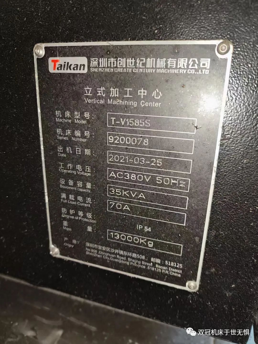 在位便宜处理,擦出来95新,2021年台群准新机1585S加工中心,台群1580加工中心,三轴加宽滚柱线轨,发那科mf plus系统,BT50主轴皮带6000转,24把机械手刀库,带链式排屑器,带配重,机况完美!需要联系昆山豫川通二手机床于世无惧:13776365218