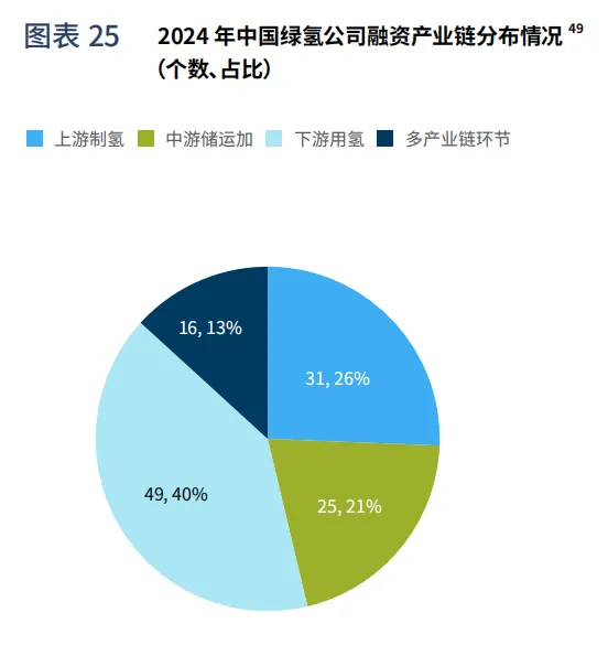 产业应用上,中国绿氢行业应用场景上加速拓展,市场前景十分广阔。作为最大的氢气生产国,2023 年,全球约一半的电解槽投资发生在中国,同时中国注重氢能基础设施建设和产业协同发展,截止 2024 年 12 月底,中国累计建成超过 497 座加氢站 10,居全球第一;交通领域,燃料电池汽车推广数量超越美国居全球第二,紧随韩国;在工业领域,绿氢在钢铁、化工等行业的应用和先进试点示范也正在逐渐展开。从全球来看,绿氢发展仍呈现区域不均衡态势,而中国有望凭借多元的应用场景和落地验证,为全球绿氢产业提供示范样板与实践经验,推动产业加速发展。