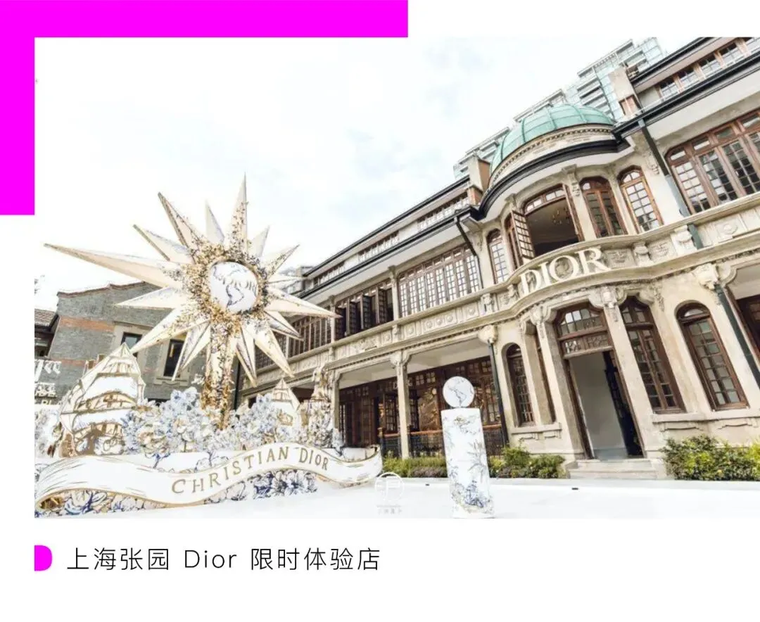 先是众多明星齐聚张园出席 Dior 的亮灯仪式,以此庆祝上海张园限时精品店开幕。亮灯的 Dior 无限梦境艺术装置是由艺术家彼得罗·鲁福倾情创作,在三层老石库门建筑外观的别墅建筑内是 Dior 品牌全品类的精品陈列,二层空间打造为法式风格的 CAFÉ DIOR,三层空间则展示着继米兰国际家具展后首度登陆国内的“迪奥小姐”MISS DIOR 椭圆背椅等家居系列,从 Dior 先生画廊主的艺术背景到法式生活方式,无不体现着 Dior 品牌的文化历史和精神内核。