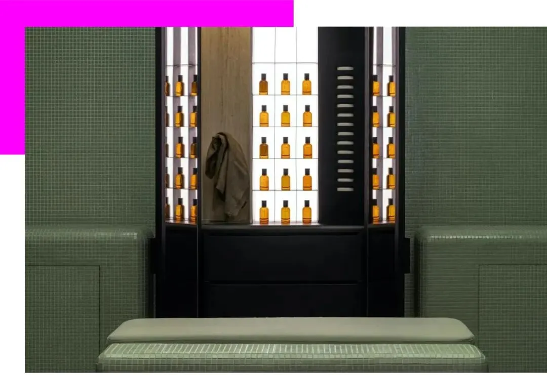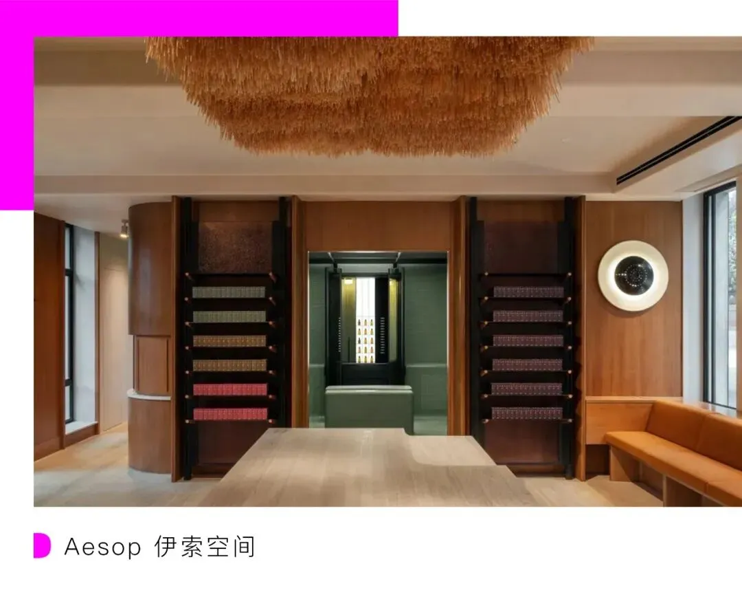 在东平路门店,对于居家空间的想象将伊索“香氛空间”诠释成了一间浴室,铺满单色瓷砖的房间之中藏有两座“香氛衣柜”,其中隐藏了 Aesop 伊索香水系列的迷人世界。小红书上对于 Aesop 伊索排队后的体验充满了记忆点——有设计感的空间陈列,人手一本的《伊索寓言》,洗手的体验,温暖的灯光,都在疫情之下和冬季排队过后,被消费者记录下了独特和温暖的体验。
