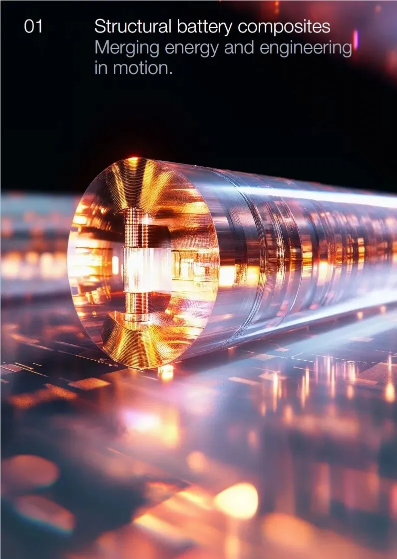 结构电池复合材料:碳纤维增强聚合物基复合材料实现力学承载与电能存储双重功能。瑞典Volvo集团展示的卡车底盘电池,能量密度达250Wh/kg,较传统锂电池提升40%,预计2027年量产车型续航突破1000公里。