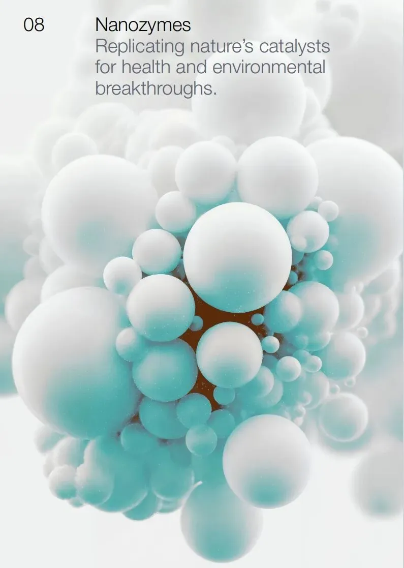 纳米酶:人工合成酶活性达天然酶1000倍,且可在80℃高温下稳定工作。中国科学家开发的Fe-N-C单原子纳米酶,已用于肿瘤催化治疗,Ⅱ期临床显示对胰腺癌抑制率达62%,同时可降解水中99.9%的微塑料污染物。