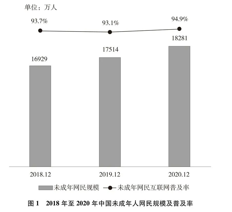 在与互联网的相互塑造中成长。互联网深刻塑造了青年,青年也深刻影响了互联网。2020年底,中国6岁至18岁未成年人网民达1.8亿,未成年人互联网普及率达94.9%,城乡普及率差距从2018年的5.4个百分点缩小至0.3个百分点,互联网已经成为当代青少年不可或缺的生活方式、成长空间、“第六感官”。随着互联网的快速普及,越来越多的青年便捷地获取信息、交流思想、交友互动、购物消费,青年的学习、生活和工作方式发生深刻改变。在网络视频(短视频)、网络直播、网约车用户中,青年都是主体。中国青年日益成为网络空间主要的信息生产者、服务消费者、技术推动者,深刻影响了互联网发展潮流。面对纷繁复杂的网络信息,中国青年在网上积极弘扬正能量、展示新风尚,共同营造清朗网络空间。