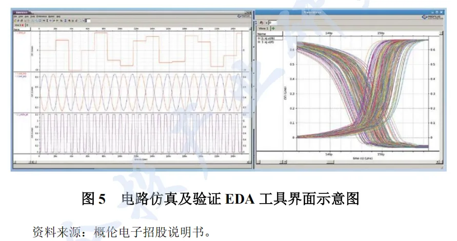 设计类 EDA 工具主要为电路仿真及验证 EDA,用于大规模集成电路的电路仿真和验证,优化电路的性能和良率。设计企业为减少反复进行流片验证耗费的时间和成本,需要在流片验证前,通过电路仿真和验证 EDA 工具尽可能真实地模拟芯片工作的过程,预测流片验证的结果。通过模拟预测的结果,在芯片设计阶段的早期就能发现设计问题,及时了解设计结果是否满足功能和性能要求,并进行相应修改,争取一次性通过完成芯片样片的流片验证。
