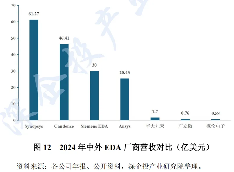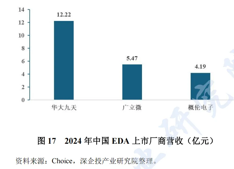 从上市公司情况看,华大九天作为国产龙头,2024 年营收达到12.22 亿元。