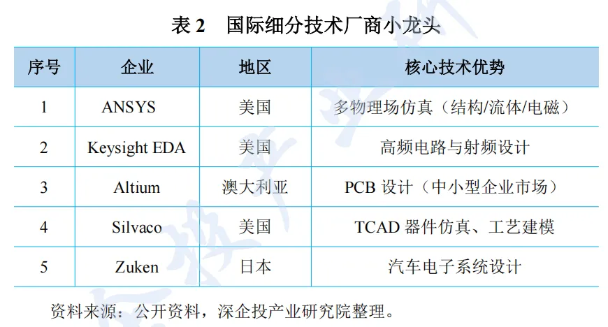 国外 EDA 主要企业如下表所示。