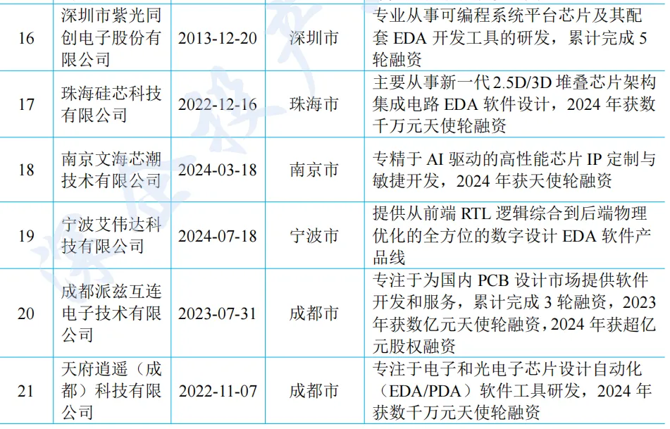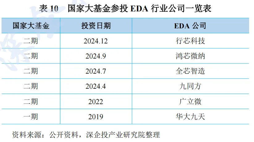国家大基金加强对 EDA 厂商投资。国家集成电路产业投资基金(简称 “国家大基金”)近年来也在加大对 EDA 厂商的投资布局,如下表所示。