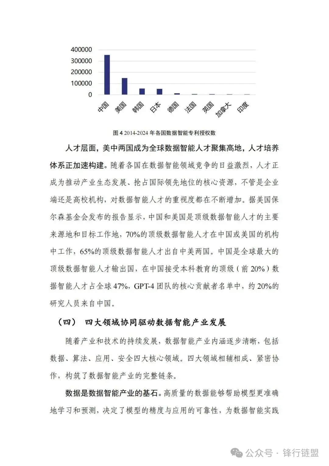 全景扫描与趋势研判:报告从全球政策、产业规模、企业分布、科研专利、人才流动等多个维度,勾勒出数据智能产业的宏观图景,并指出其已进入由数据、算法、应用、安全四大领域协同驱动的发展新阶段。