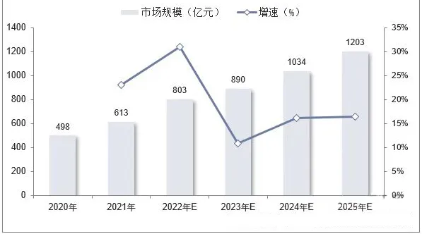 图6 2020—2025年全球再生PS+PET市场规模及增速