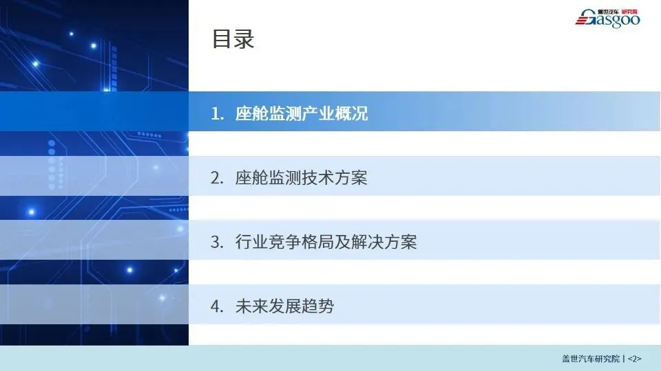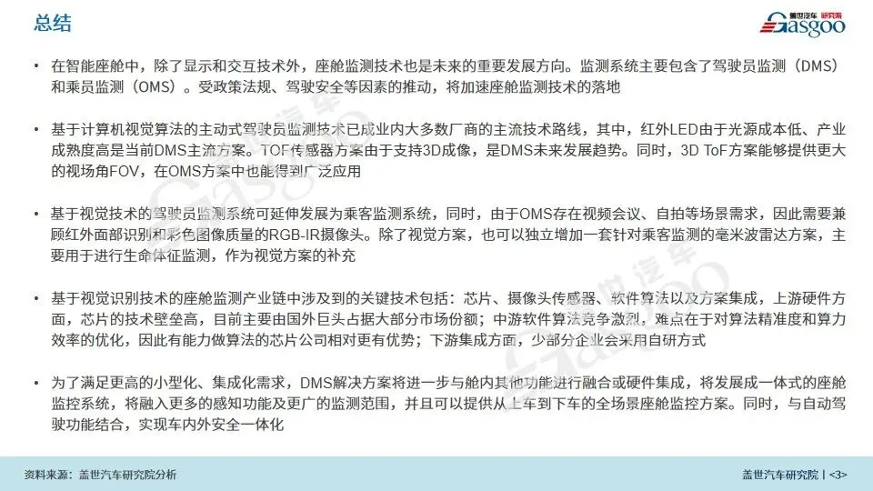 盖世汽车研究院围绕座舱监测产业概况、座舱监测技术方案、行业竞争格局及解决方案、未来发展趋势等内容进行解读,供行业相关用户参考!