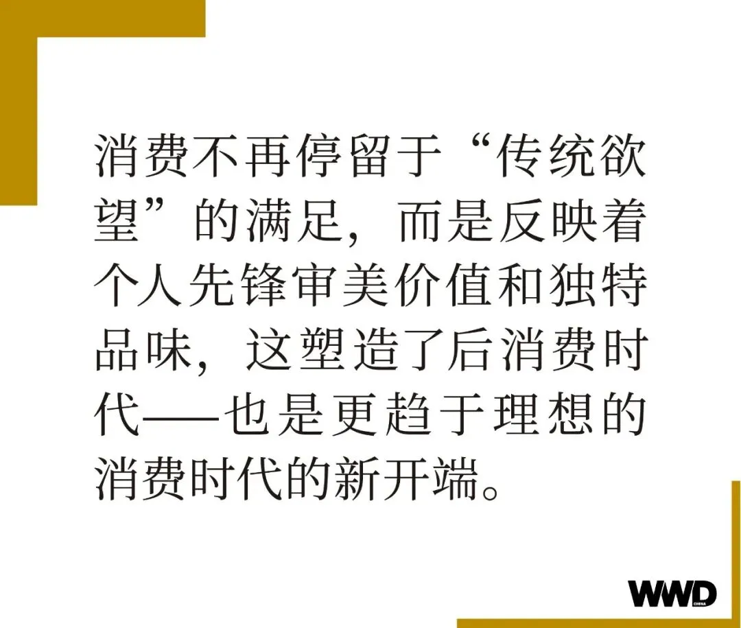 消费不再停留于“传统欲望”的满足,而是反映着个人先锋审美价值和独特品味,这塑造了后消费时代——也是更趋于理想的消费时代的新开端。
