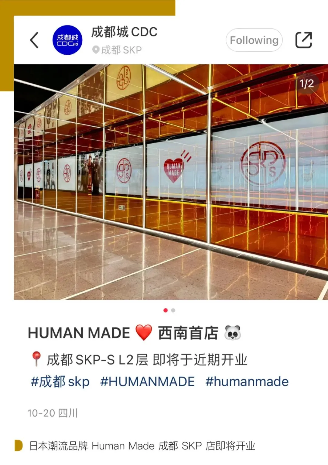 近日,日本潮流品牌 Human Made 在成都 SKP 设立围挡,将开设位于西南市场的首家门店,而此前它已经在北京 SKP-S 开过快闪,中国首店则开在了上海的 TX 淮海年轻力中心,在半年多的时间内完成了中国市场的加速扩张。日本潮流品牌在社交媒体和代购等渠道,在中国市场具有一定的存在感,实体门店的设定则将帮助品牌更好地建立市场认知,与消费者的链接更加紧密。