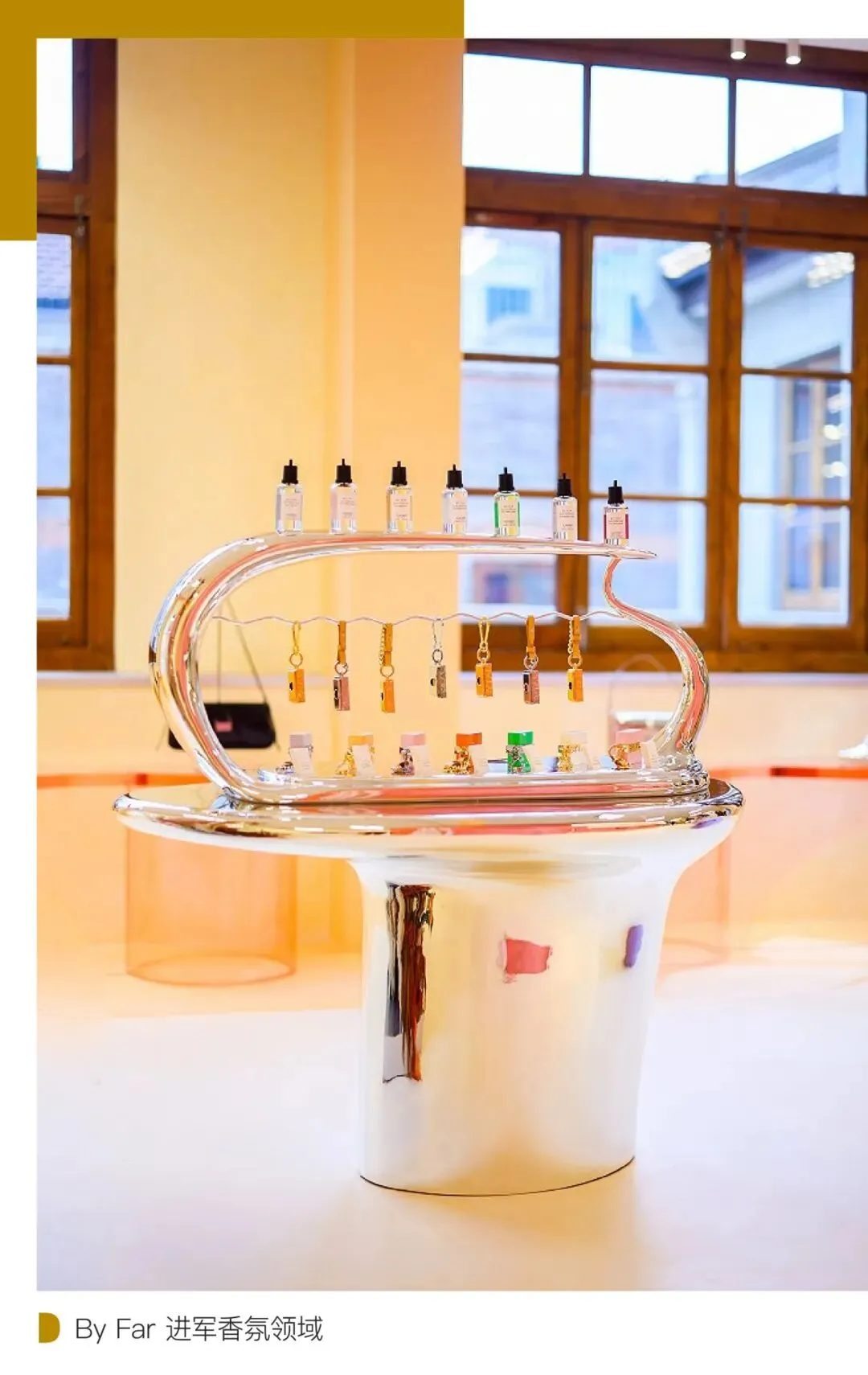 By Far 自 2023 年 1 月起,在全国多个地标性精品商场陆续开出更多的直营门店。随着直营规模的扩大,By Far 中国区总经理管俊清曾表示,他们将对包括买手店在内的其他渠道进行整合和提升,以确保品牌体验和定位的精准表达。独立线下门店是一个品牌的设计理念、品牌内涵、价值观的综合全息整体体现,新晋品牌在最初的以单品印象转变到成熟阶段的品牌印象的努力中,最好的方式是以实体店铺的形式来和消费者进行沟通。此外,By Far 除了包袋和鞋履这两个深耕领域外,还进军了香氛领域,覆盖消费者生活方式的更大范围。