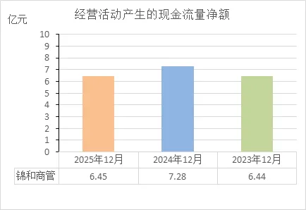 近三年(2023-2025年)经营活动产生的现金流量净额分别是6.44亿、7.28亿、6.45亿。