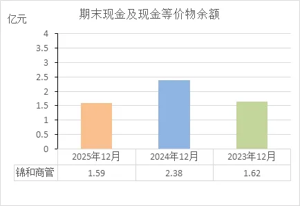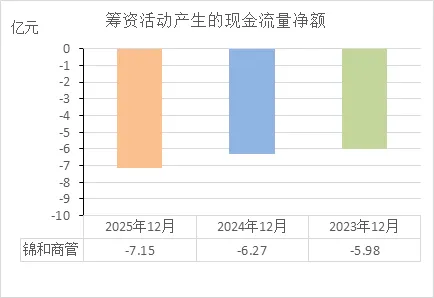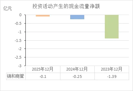 锦和商管这三年的投资现金流数据:2023年净流出1.39亿,2024年缩窄到0.25亿,2025年进一步减少到0.1亿。