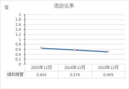 三年的速动比率:2023年0.499倍,2024年0.576倍,2025年0.645倍。