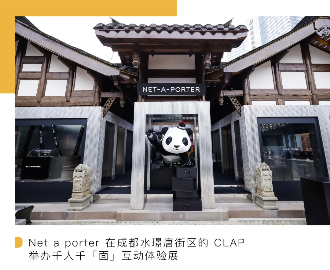 同样作为在中国市场不断加速布局的奢侈品电商,Net a porter 和发发奇也在不同程度、不同维度的投入聚焦中国市场。正如 10 月 24 日,Net a porter 通过在成都水璟唐街区的 CLAP 举办的千人千「面」互动体验展,表达了 Net a porter 对不同样貌时尚风格的推崇。由传统的川西四合院建筑改造而成、展现成都兼具传统与现代特点的 CLAP,也与千人千「面」的活动主旨相契合。