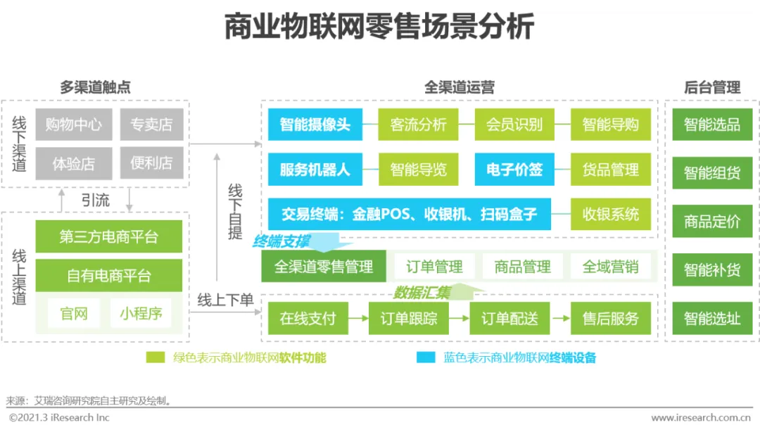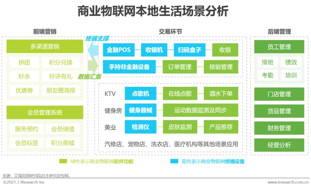 商业物联网是连接B端商户经营者和最终消费者,提供智能化的产品和服务,旨在提升顾客消费体验和经营管理决策效率、实现供需精准匹配的智能服务系统,是连接消费需求侧和供给侧的桥梁和纽带。