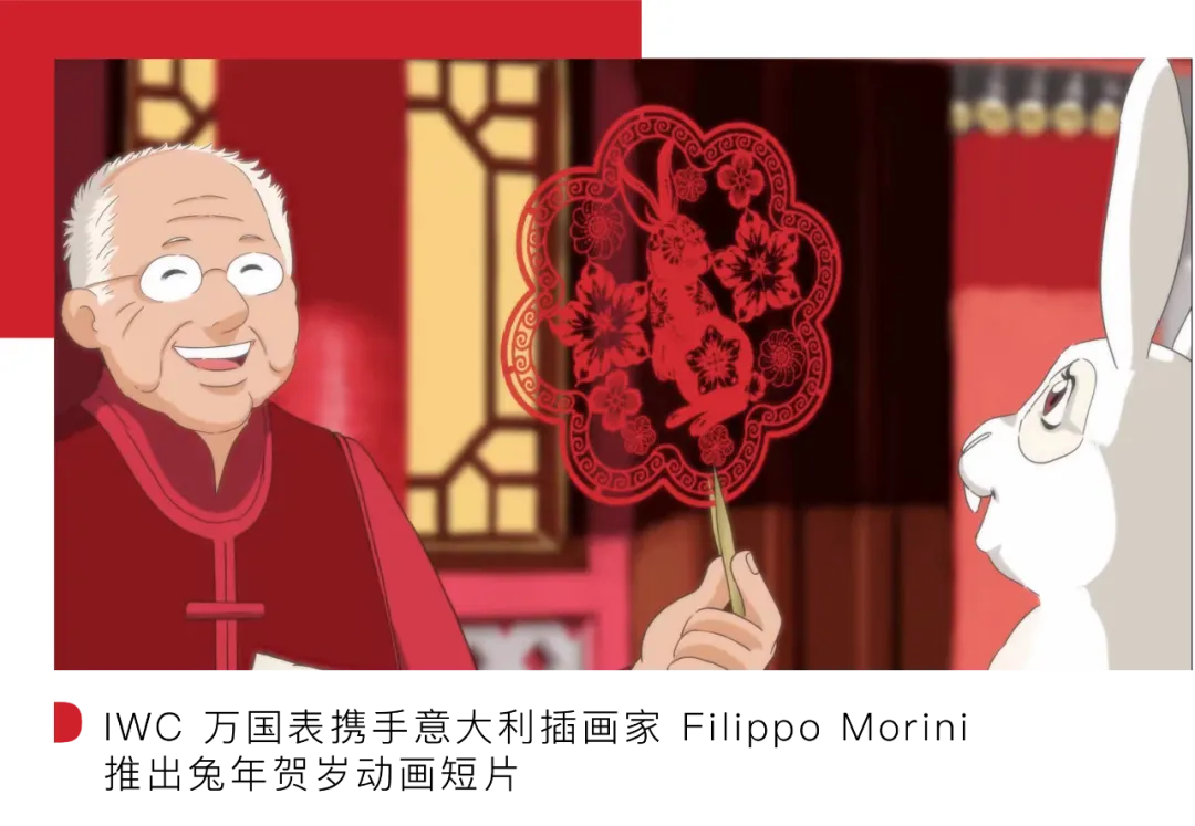 Morini 推出兔年贺岁动画短片,视频中更有钟表泰斗葛珞斯(Kurt Klaus)以动画形象再度亮相;北欧丹麦鞋履品牌 Ecco 除了呈献三款风格多元的新品系列外,还携手国民治愈系IP不二兔,联手打造新春限定IP形象,安东尼笔下的不二兔亦穿着 Ecco 新春系列新品,畅游于城市自然间,为来年注入愉悦想象。