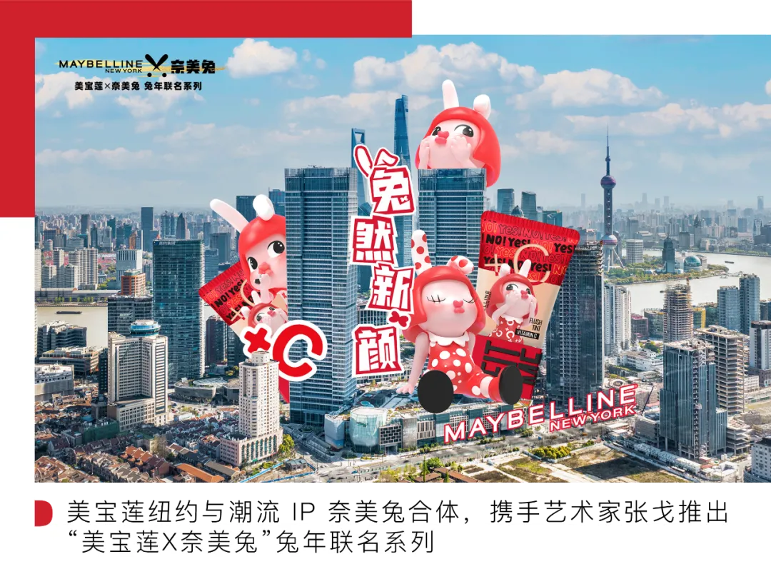 作为美妆品牌的美宝莲纽约与潮流 IP 奈美兔合体,携手艺术家张戈推出 “美宝莲X奈美兔”兔年联名系列产品,并与新消费咖啡品牌代数学家algebraist 开启多业态跨界联动,建立与 Gen Z 的全新联结,在覆盖广度和渠道深度双重发力,打造集艺术美学、玩趣互动、科技美妆的多元立体化场景,在新年氛围感中感受数智化和场景化的彩妆娱乐零售新体验。