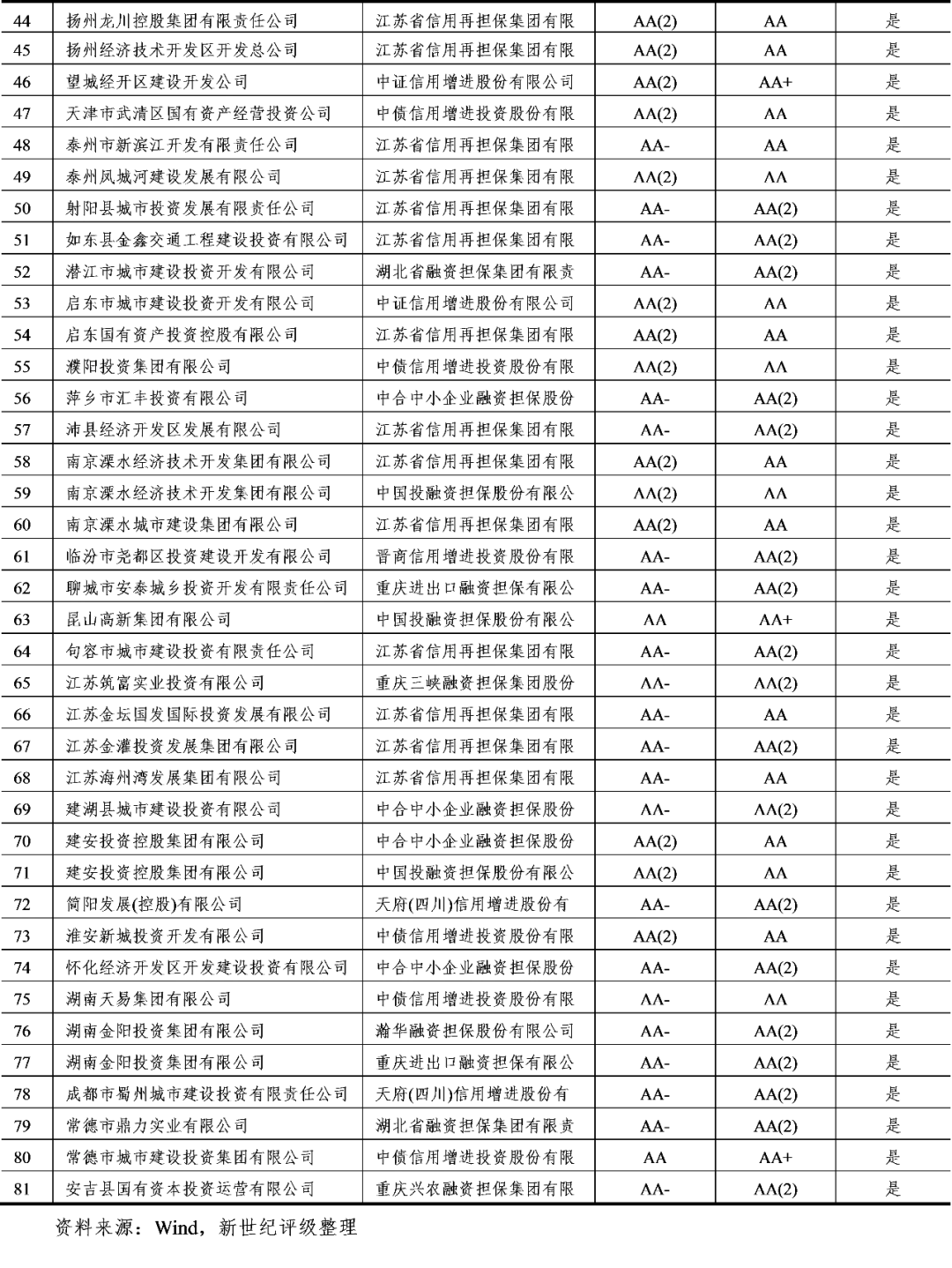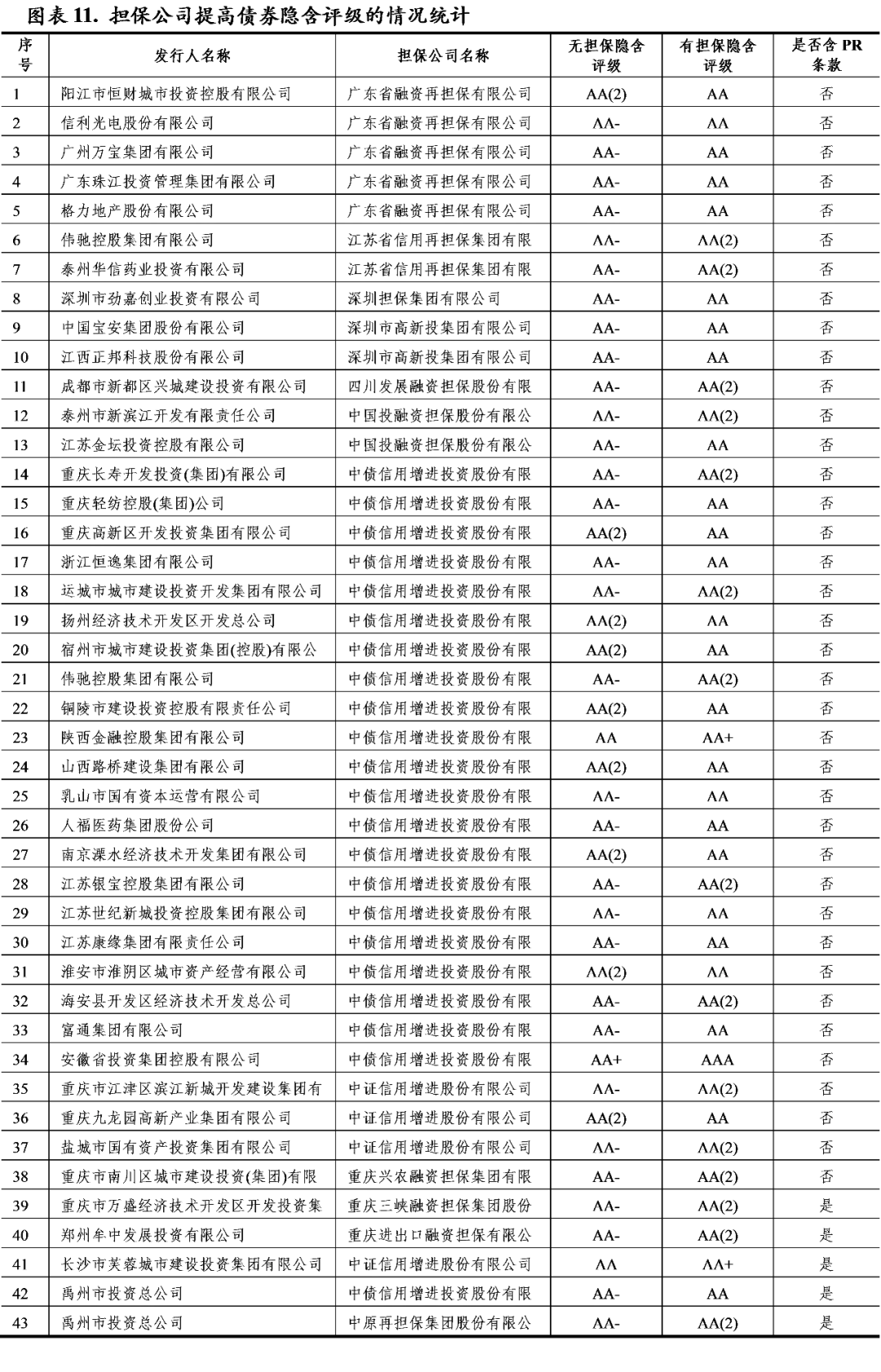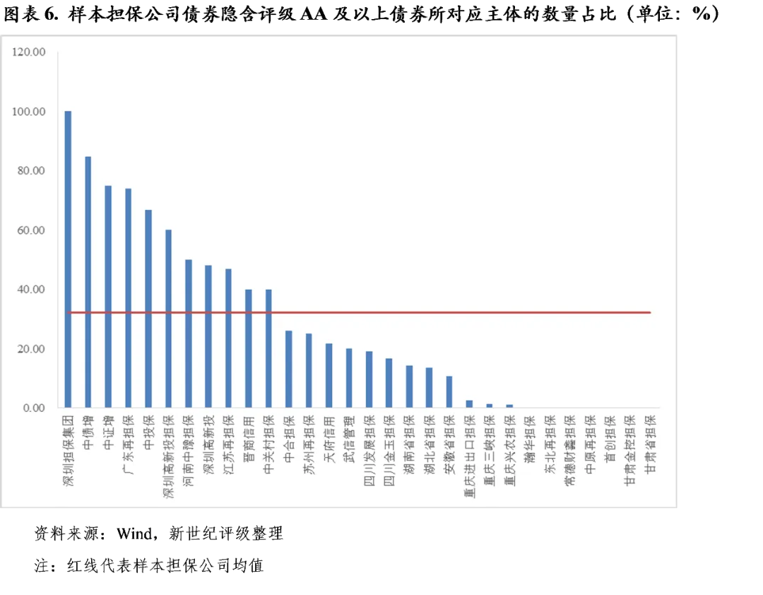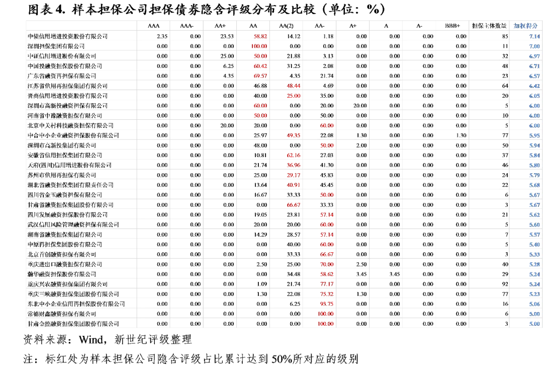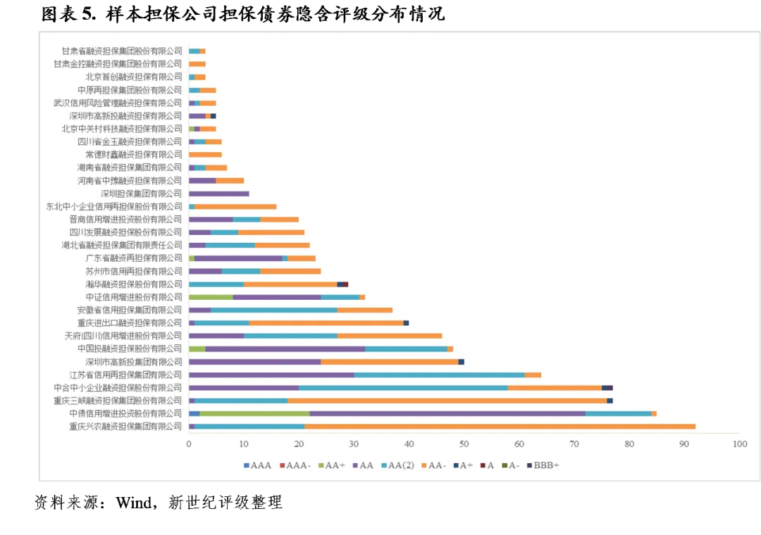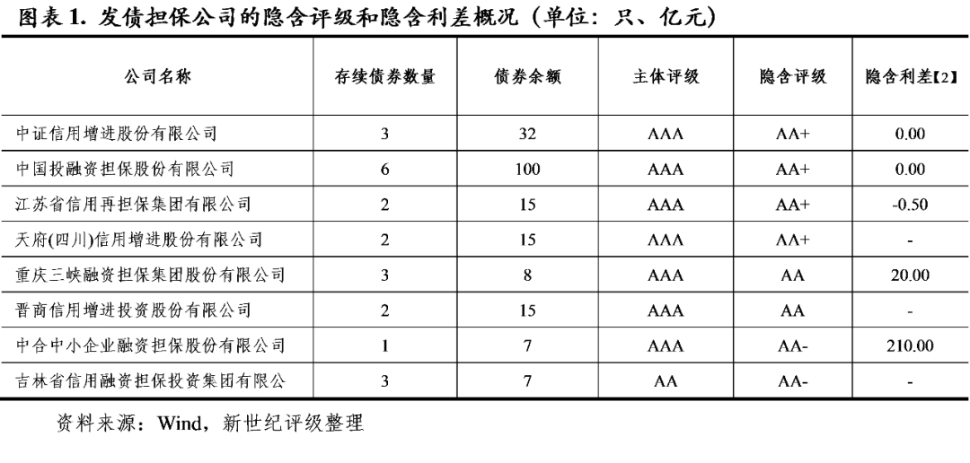 (1)通常情况下,担保公司的隐含评级是其担保债券隐含评级的上限,例如,重庆三峡担保、晋商信用增进存续债券的隐含评级为AA,其所担保债券的隐含评级均不高于AA;