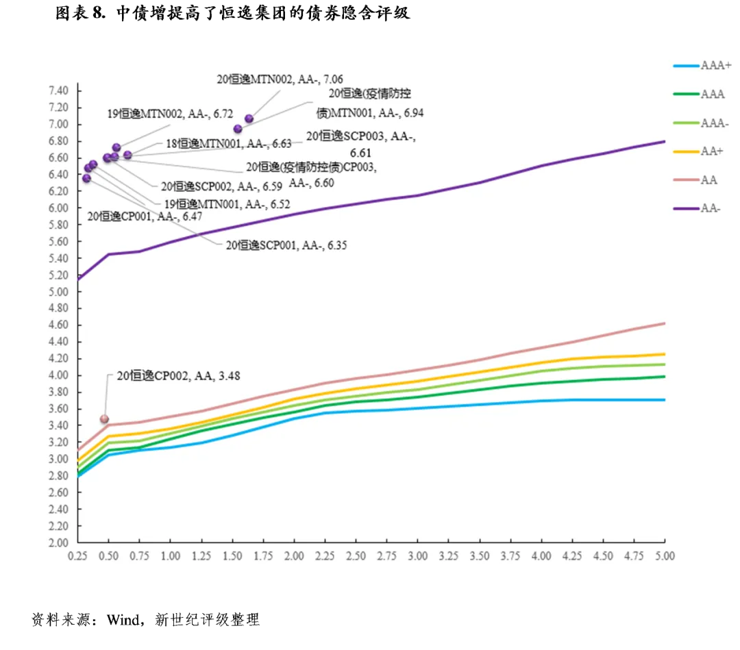 以恒逸集团为例,其发行的无担保债券收益率平均为AA-曲线上浮115bp,而中债增担保的“20恒逸CP002”债券收益率为AA曲线上浮10bp,体现了隐含评级的提升。