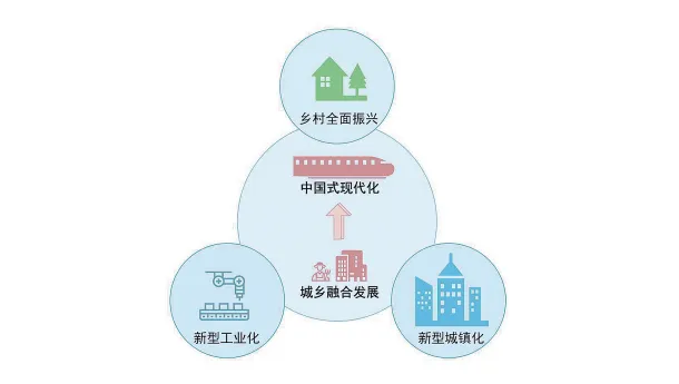 现代化进程中,如何处理好工农关系、城乡关系,在一定程度上决定着现代化的成败。2020年12月,习近平总书记在中央农村工作会议上指出,“今后15年是破除城乡二元结构、健全城乡融合发展体制机制的窗口期”“要把县域作为城乡融合发展的重要切入点,推进空间布局、产业发展、基础设施等县域统筹,把城乡关系摆布好处理好,一体设计、一并推进。”2022年5月,中共中央办公厅、国务院办公厅印发的《关于推进以县城为重要载体的城镇化建设的意见》指出,县城是我国城镇体系的重要组成部分,是城乡融合发展的关键支撑,对促进新型城镇化建设、构建新型工农城乡关系具有重要意义。2023年底召开的中央经济工作会议提出,“要把推进新型城镇化和乡村全面振兴有机结合起来,促进各类要素双向流动,推动以县城为重要载体的新型城镇化建设,形成城乡融合发展新格局”。党的二十届三中全会 《决定》 进一步提出,“统筹新型工业化、新型城镇化和乡村全面振兴”。