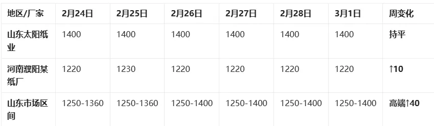 北方市场(山东、河南):山东挂牌价稳定,实际成交区间高端上移40元;河南虽有10元跟涨,但整体涨幅不及南方。
