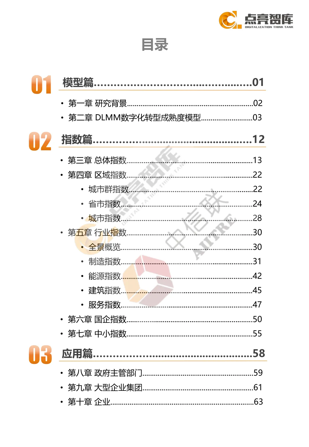 03 不同规模企业转型特征国有企业:成熟度指数38.9,显著高于全国平均,央企(42.1)领跑地方国企(37.0);24.1%的国企迈入实质性转型阶段,在数据要素开发、智能设备应用等指标上优势突出,但业务模式创新、组织文化适配仍需加强。 中小企业:成熟度指数28.6,仍落后全国平均水平;86.92%的企业处于基础信息化阶段,数字化投入有限(资金投入占比1.2%),聚焦经营管理、采购销售等“快速见实效”场景;智能设备互联、数据自动采集等基础能力建设是核心突破方向。 大型企业集团:作为产业链链主,聚焦平台化、生态化转型,通过构建统一评价体系、规划转型蓝图、场景化落地,推动全产业链协同;在网络化协同、服务化延伸、个性化定制等模式创新上率先突破。