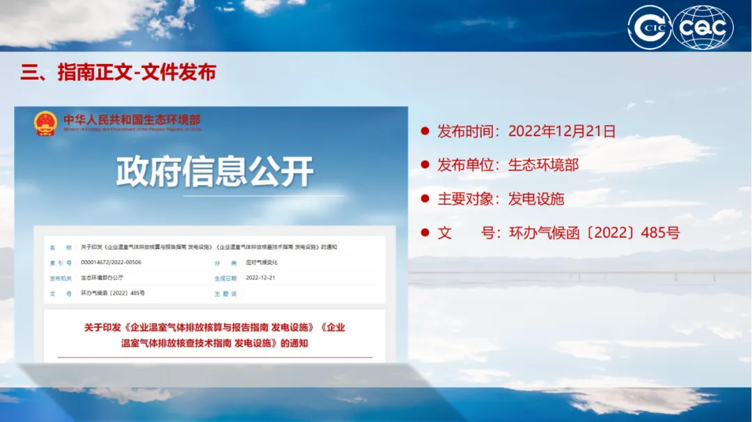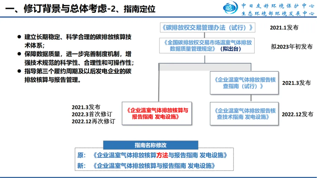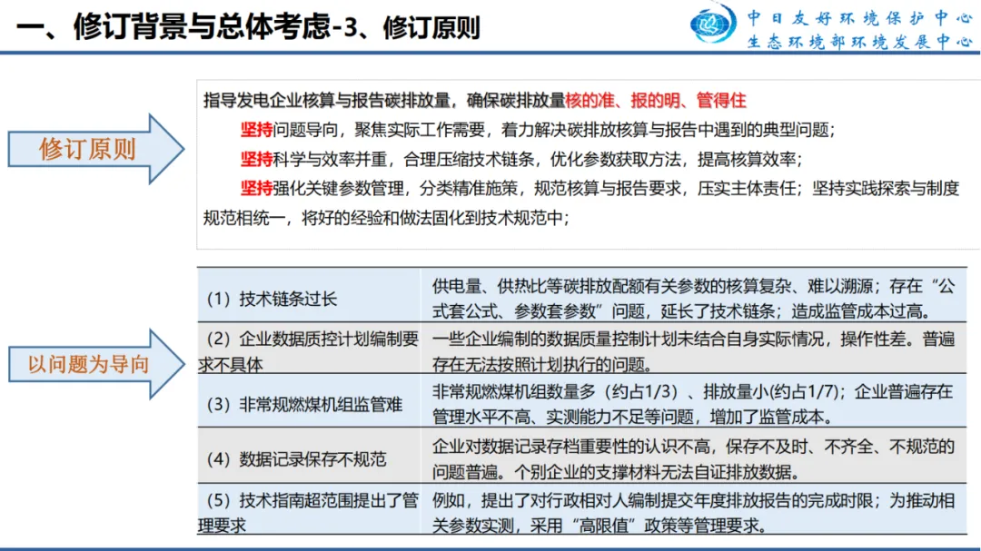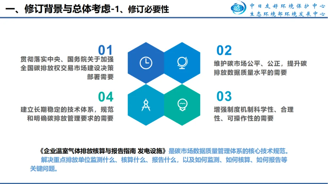 1、第一份PPT来自生态环境部发展中心,系统分析《企业温室气体排放核算与报告指南 发电设施》:从修订背景与总体考虑出发,以解决原指南技术链条过长、数据质控计划不具体、非常规机组监管难等典型问题为导向,围绕排放量计算、生产数据、数据质量控制计划、关键参数管理等核心内容,系统解读技术指南如何规范发电企业碳排放核算与报告,确保碳排放量核得准、报得明、管得住,并将实践中好的经验做法固化为技术规范。