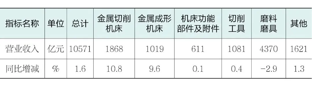 表1 2025年机床工具行业及主要分行业的营业收入情况